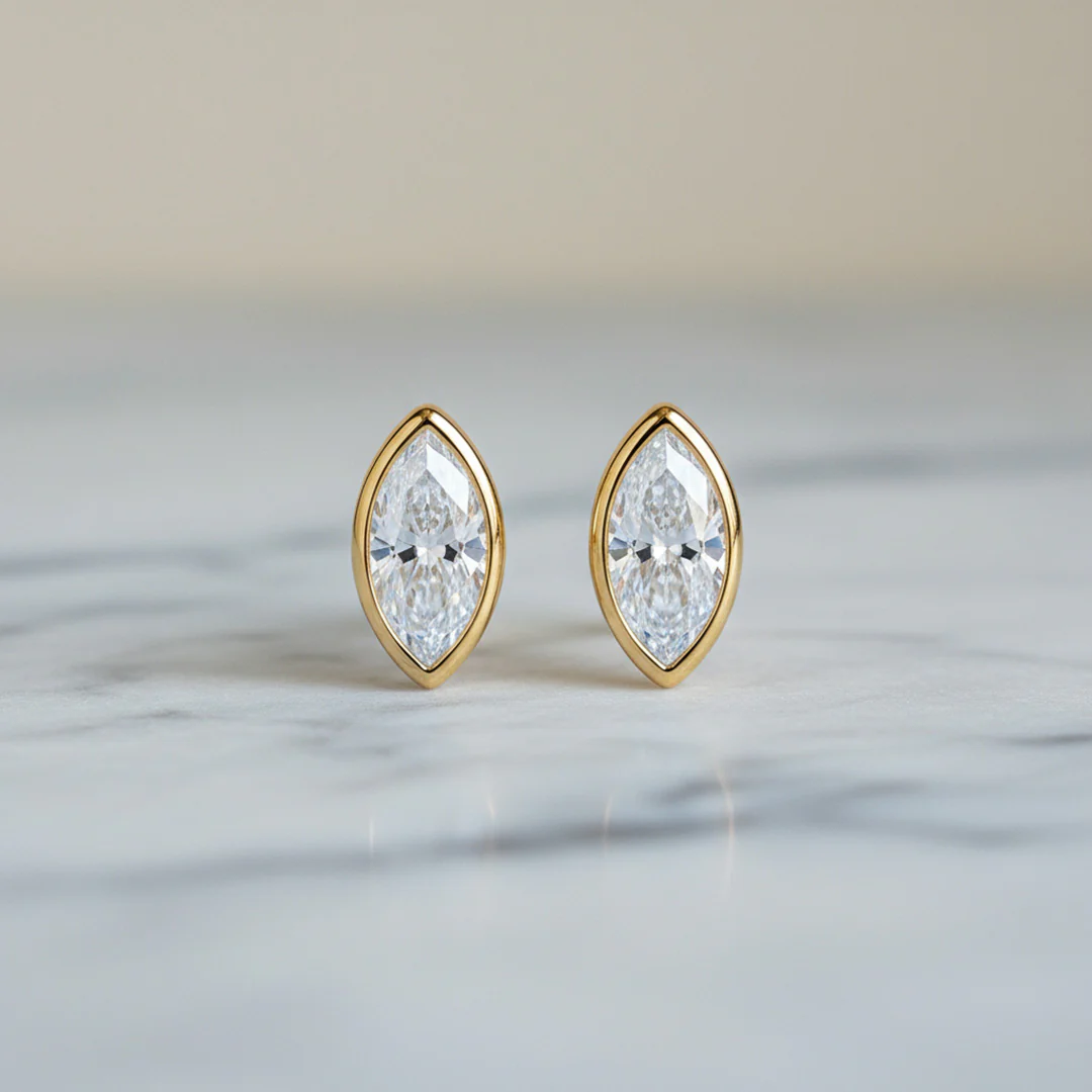 Classic sparkle meets modern design — 14K Yellow Gold Thin Bezel-Set Marquise-Cut Diamond Studs, crafted for timeless everyday wear.