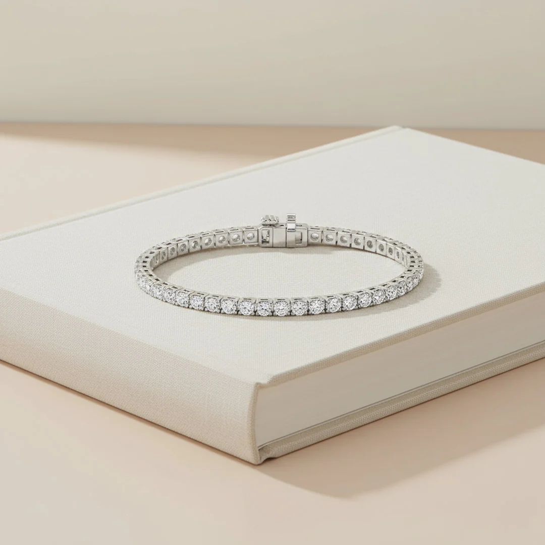 The Diamond Tennis Bracelet: a flawless row of diamonds in 14k white gold, encircling the wrist with timeless elegance and brilliance.