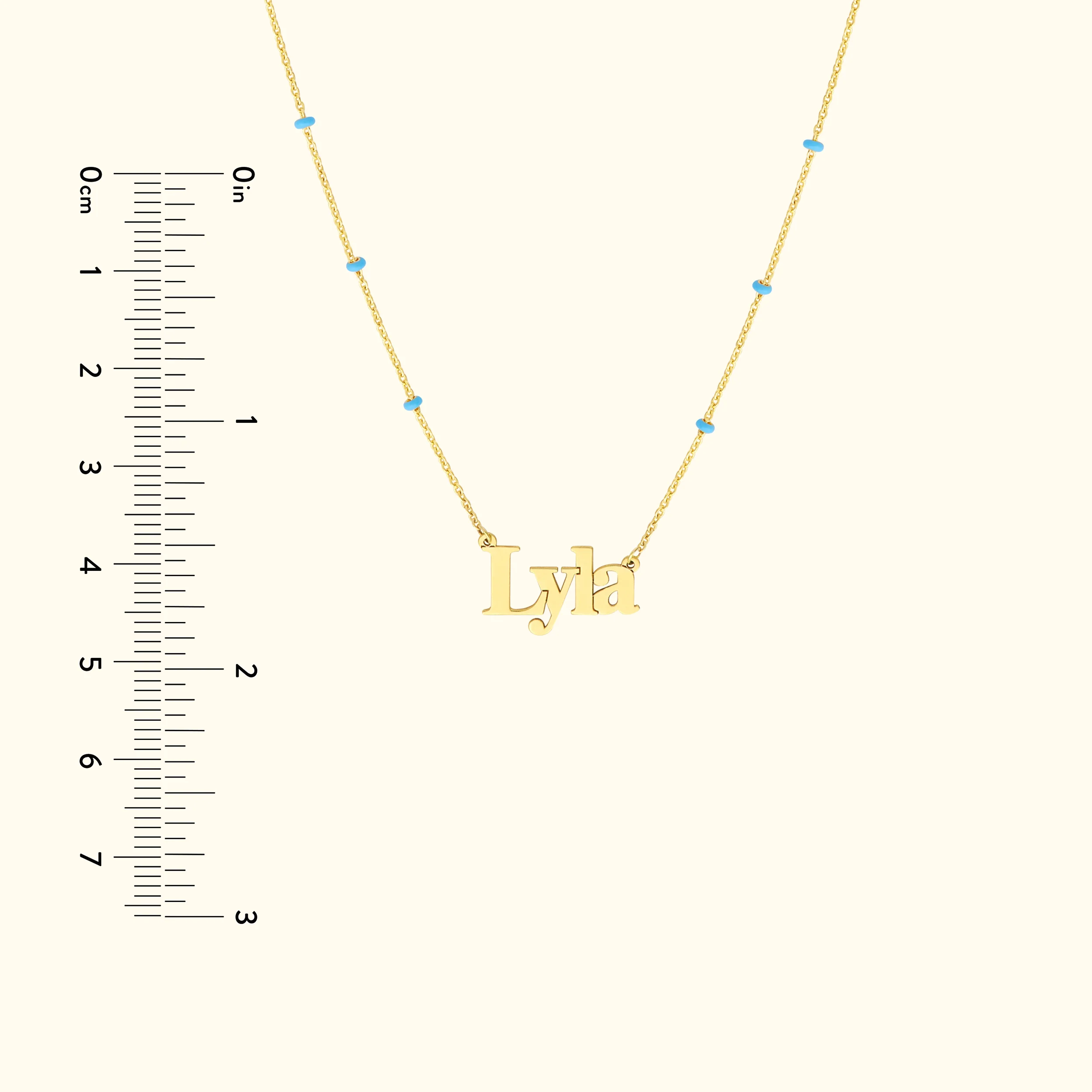 A gift they won't forget or take off. This blue Enamel Bead Nameplate Necklace is sweet and elegant. Made in 14K gold and adjustable from 16 to 18 inches.