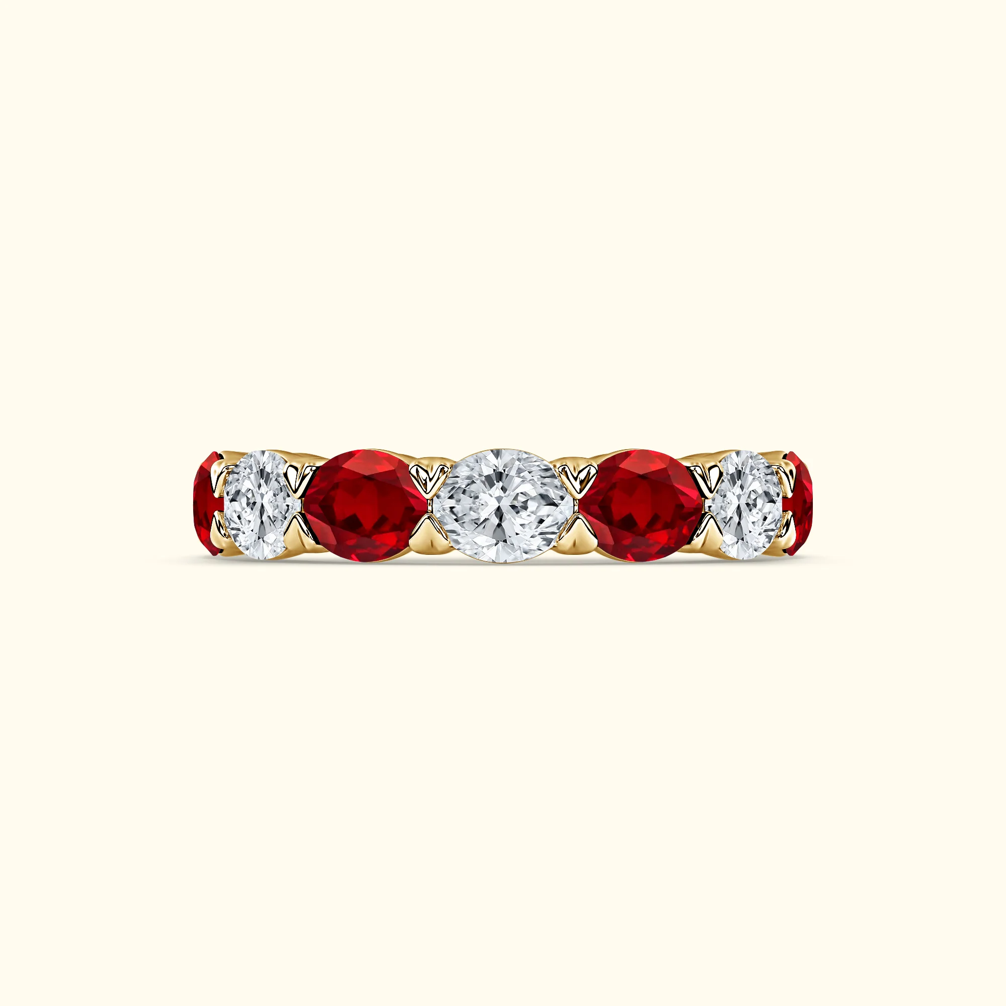This eternity ring features 3.00 carats of alternating oval-cut rubies and diamonds, combining vibrant color with timeless sparkle for a meaningful symbol of enduring love