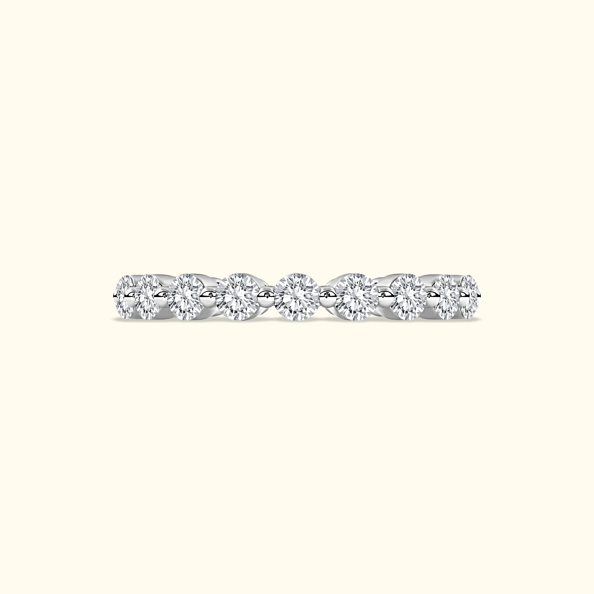 Delicate and timeless, this eternity wedding band features 1.17 carats of round diamonds in a shared prong setting, creating a seamless circle of sparkle and classic elegance.