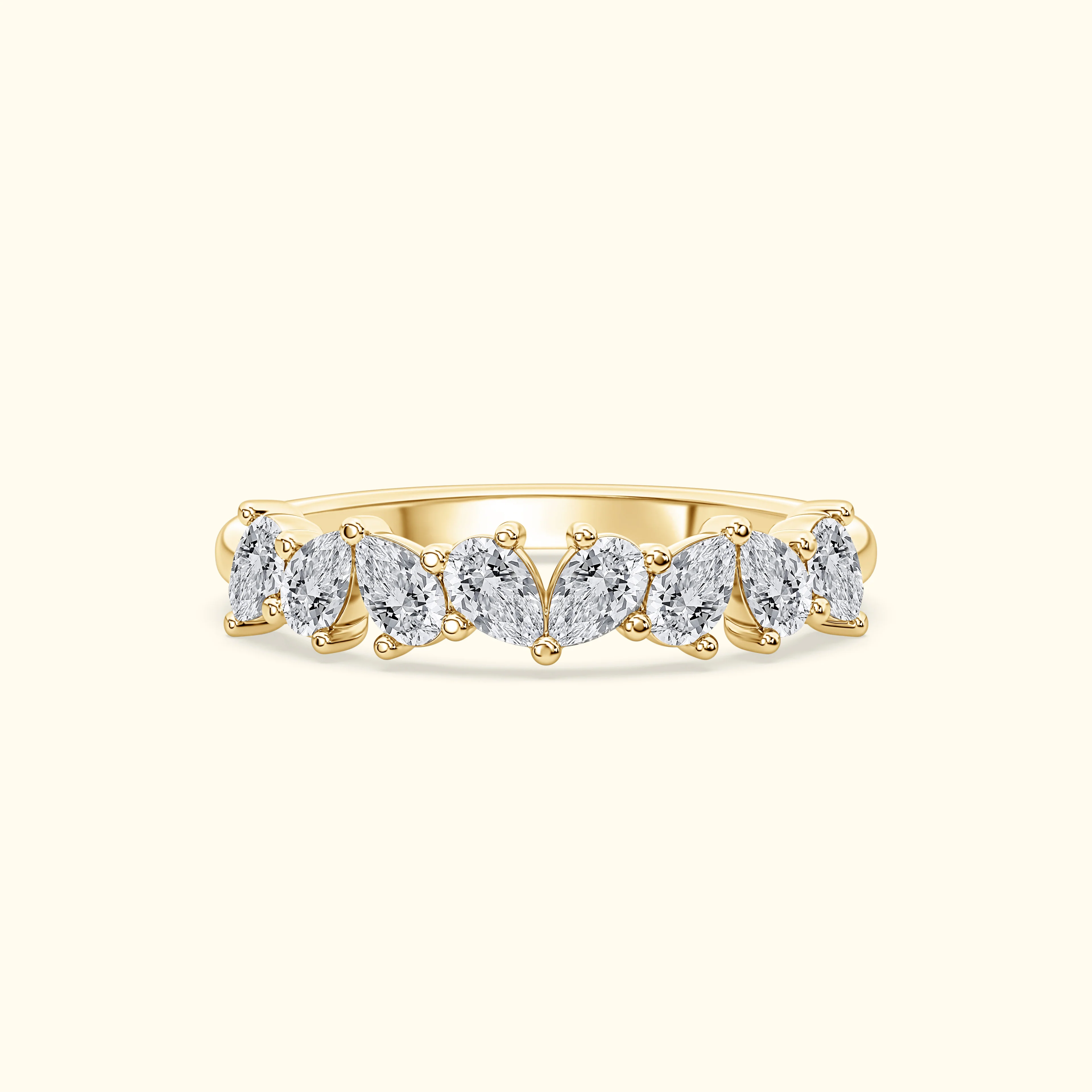 This staggered, offset design showcases pear-shaped diamonds totaling 1.00 carat, offering a unique, modern silhouette with elegant sparkle.