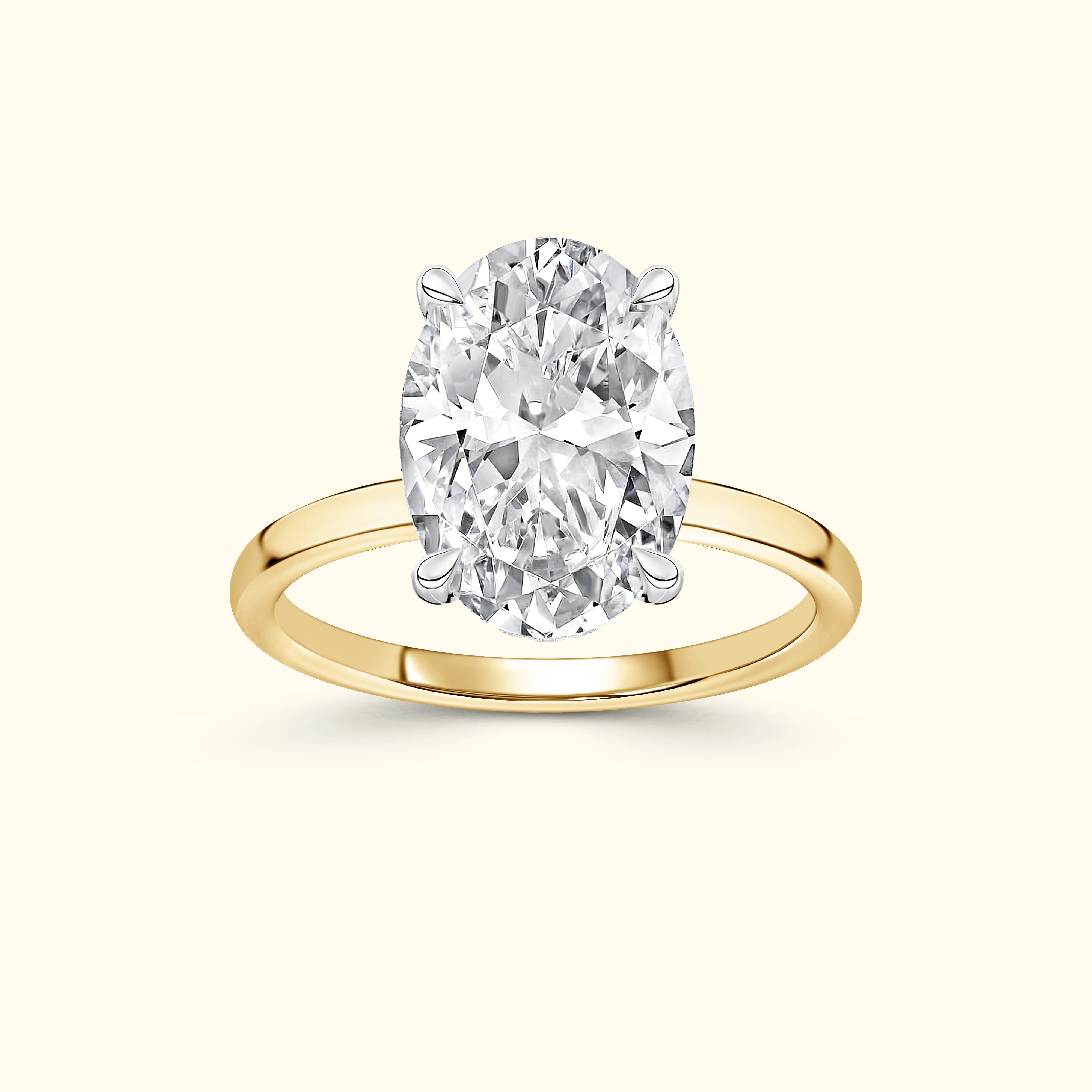 A refined symbol of timeless love. A brilliant diamond sits atop a slimline, comfort-fit band. Its simplicity enhances the stone's brilliance, creating an enduring statement of elegance and commitment.